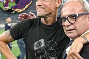 体育资讯06月01日讯 24/25赛季欧冠决赛,巴黎5-0国米横扫国米夺冠。赛后巴黎主教练恩里克脱掉外套,露出了T恤。